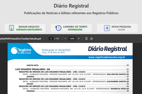 Diário Registral adota nova sistemática de publicação